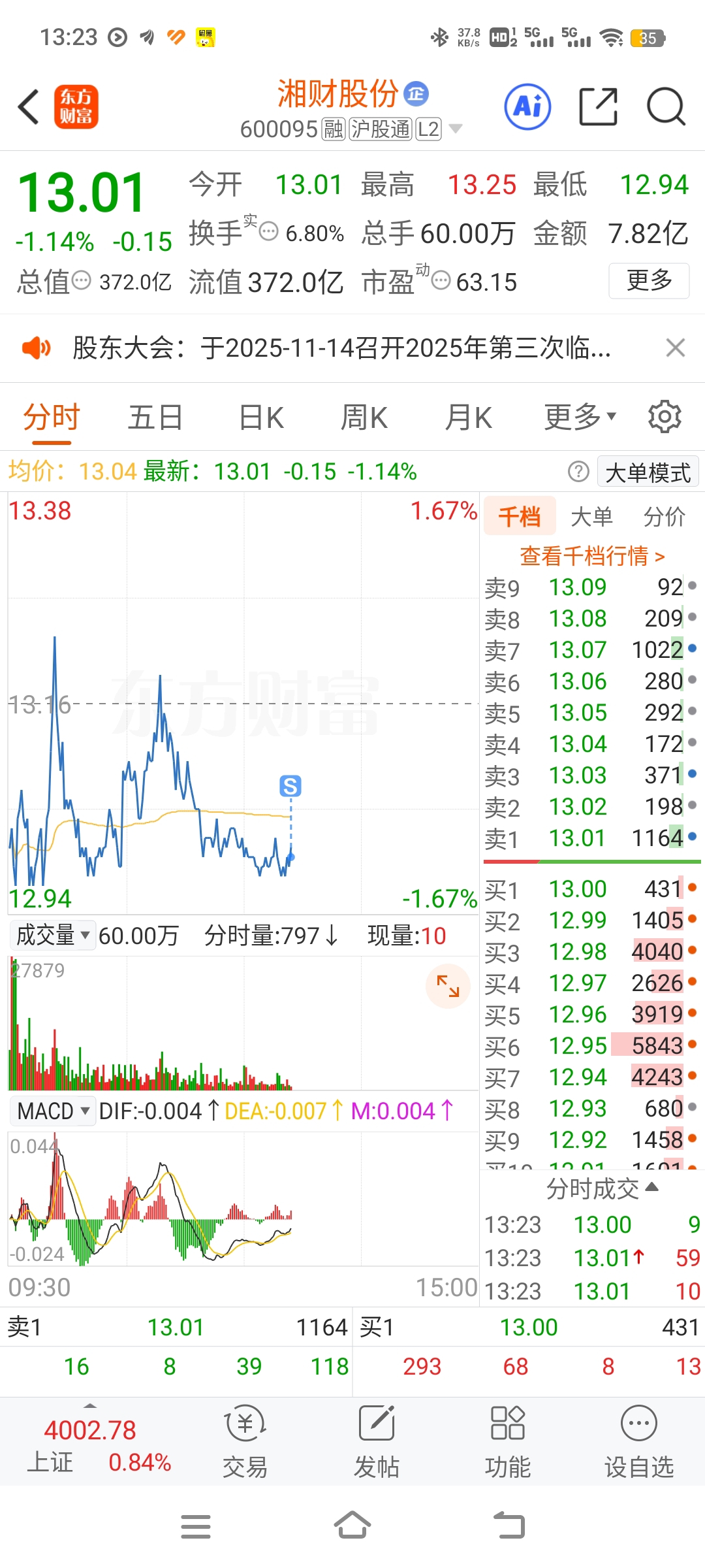 $湘财股份(SH600095)$