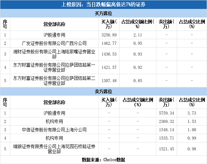 今日龙虎榜单上出现了沪股通的身影,占据了买一、卖一的位置,净卖出2502.45万,占当日成交总额的1.62%。