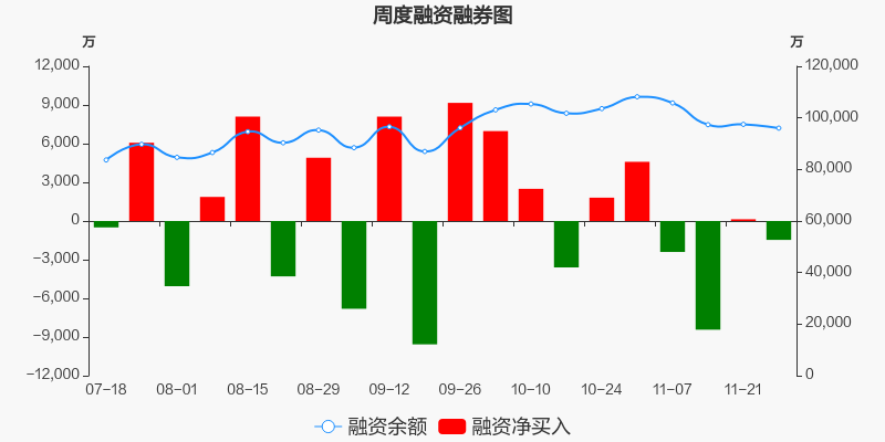 湘财股份本周(2025/11/24-2025/11/28)累计涨幅达0.54%,截至11月28日最新股价报收11.27元。从增量上来看,11月24日至11月28日融资买入交易规模1.65亿元,融资偿还规模1.8亿元,期内融资净偿还1464.57万元。从存量上来看,截止11月30日,湘财股份融资融券余额9.66亿元,其中融资余额规模9.6亿元,融券余额规模559.44万元。
