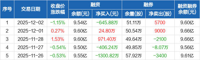 湘财股份:融资净偿还645.88万元,融资余额9.54亿元(12-02)