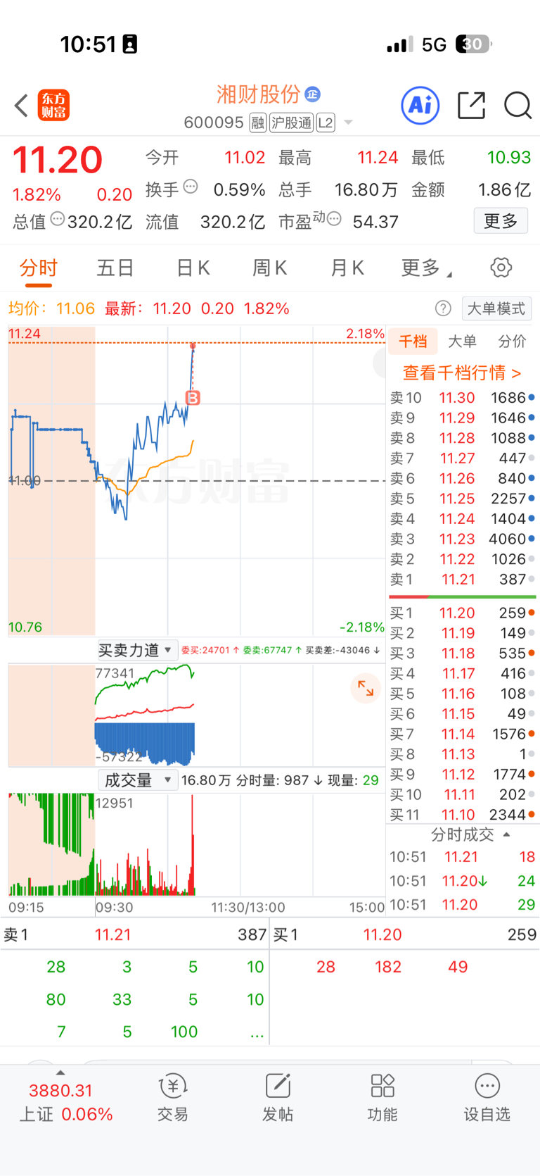 $湘财股份(SH600095)$ 不好意思兄弟们,我买什么什么就跌,就涨幅就到此为止吧