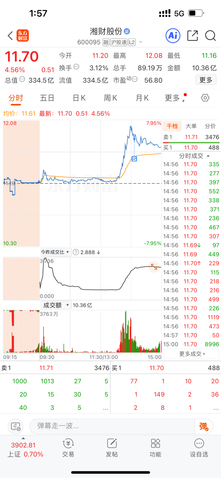 $湘财股份(SH600095)$ 跑错了,周末出个这么大利好。