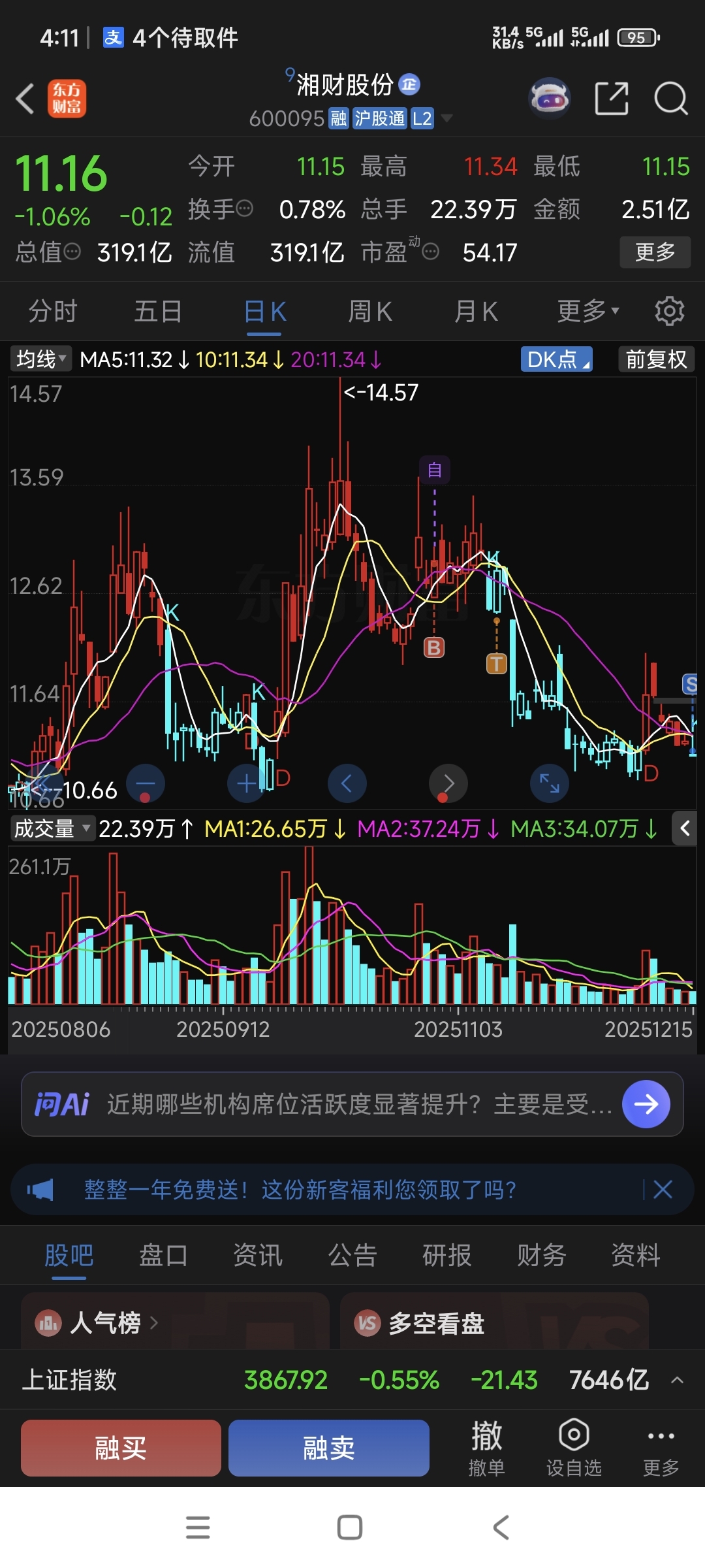 $湘财股份(SH600095)$ 拿不住了,最近买的重组股全终止了,芯原股份吃了个大面,万一这小子也失败,就惨了。所以撤了。