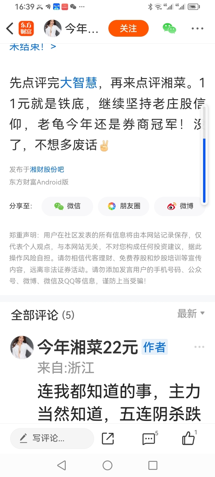 温馨提示: 1.根据《证券法》规定,禁止编造、传播虚假信息或者误导性信息,扰乱证券市场;2.用户在本社区发表的所有资料、言论等仅代表个人观点,与本网站立场无关,不对您构成任何投资建议。用户应基于自己的独立判断,自行决定证券投资并承担相应风险。《东方财富社区管理规定》