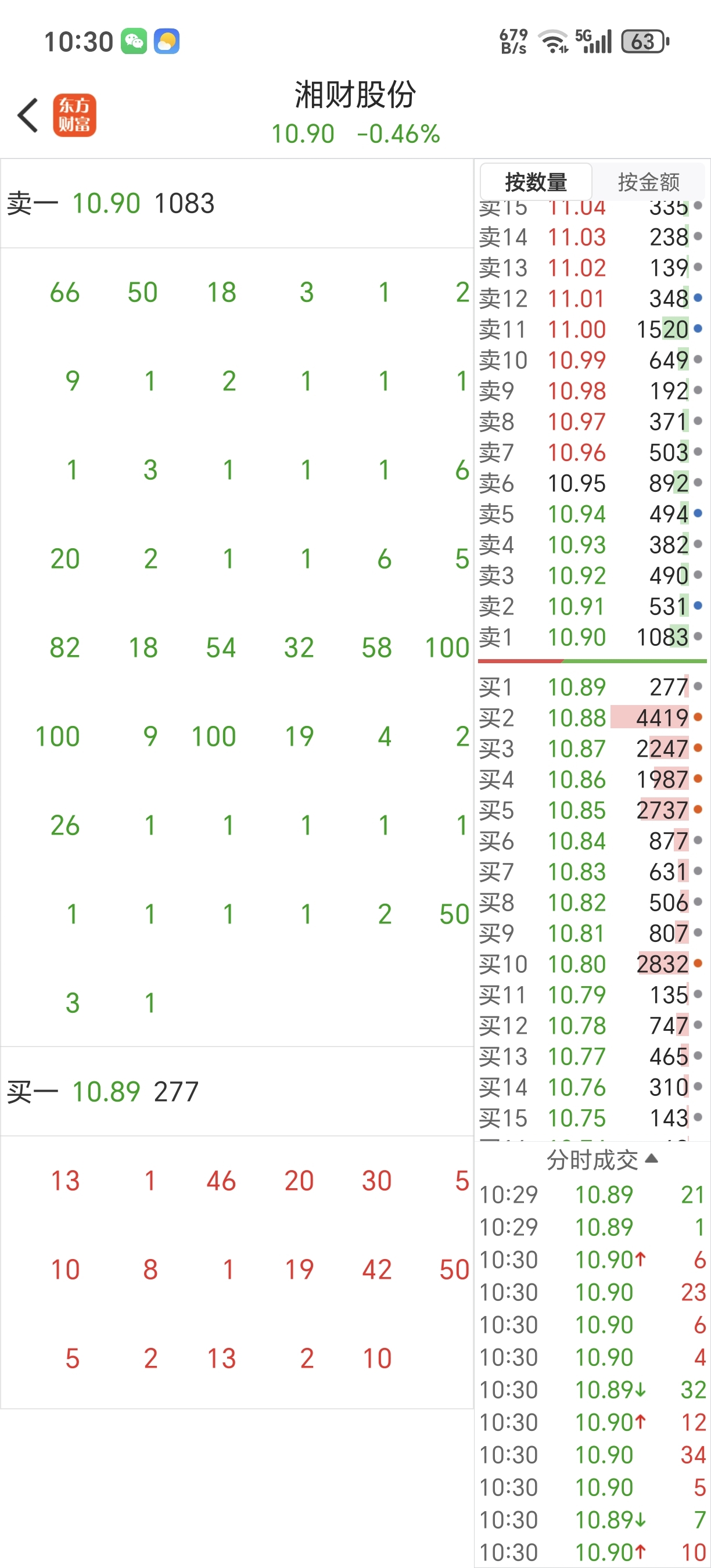 $湘财股份(SH600095)$ 这么多1手的单?什么鬼?