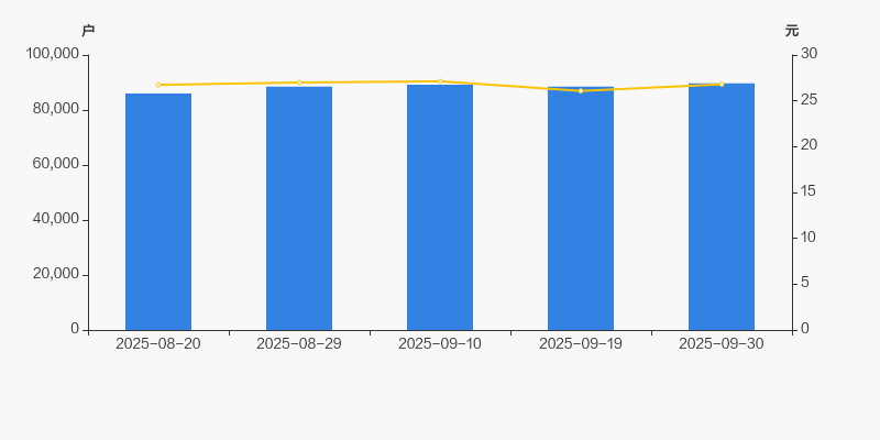 2025年8月20日至今,公司股东户数有所增长,区间涨幅为4.30%。2025年8月20日至2025年9月30日区间股价上涨0.22%。