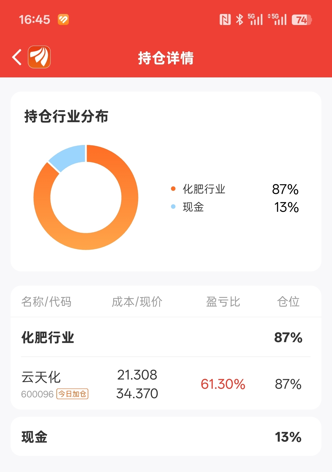 $云天化(SH600096)$ 继续保留大仓位不动。