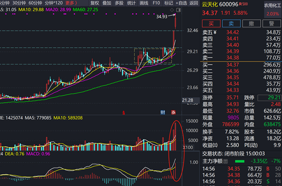 云天化上周四强势突破29.80的震荡平台上沿,周五跳空高开高走,已持有的仓位就继