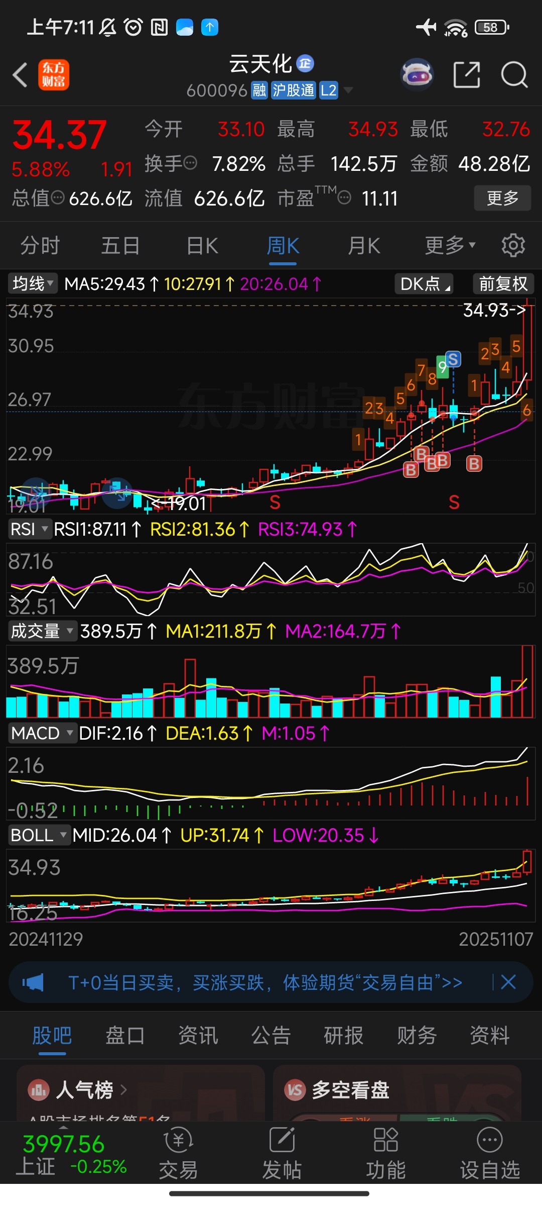 今年上半年我重仓 $北方稀土,已清仓。目前重仓 $云天化 和 $川恒股份 ,拭目以待吧。