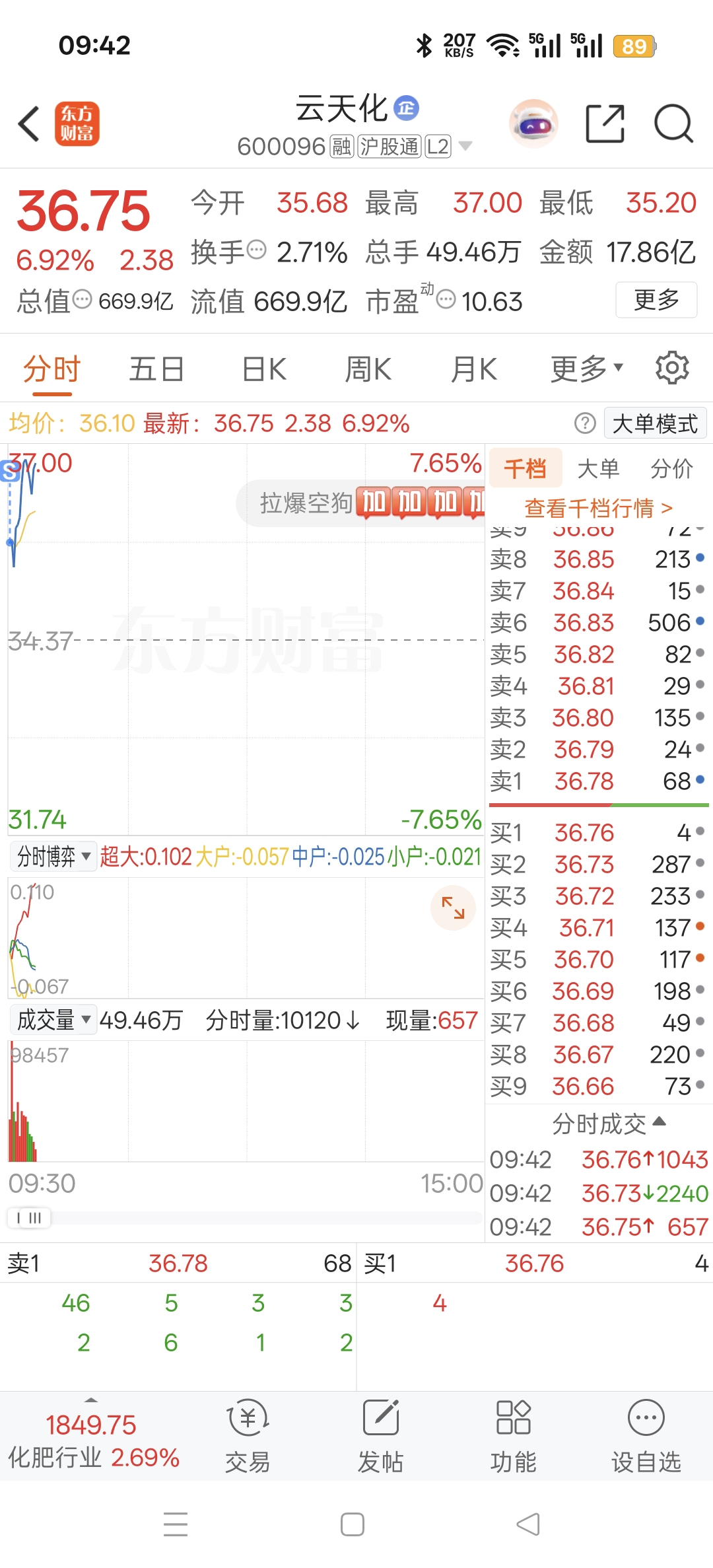 $云天化(SH600096)$ 卖飞了,接不回来了