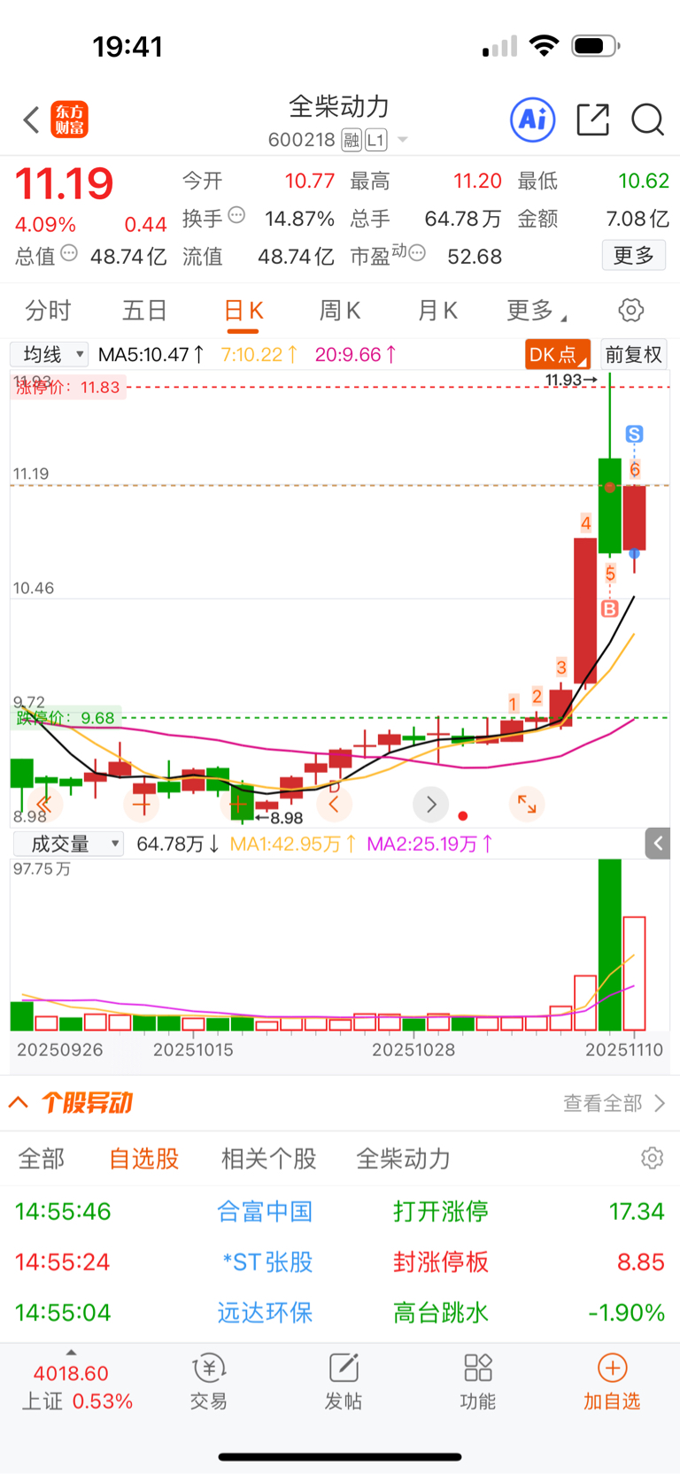 $云天化(SH600096)$ 这量怕个毛线,不赚钱不走,量能都没有全柴动力吓人,全柴今天都没跌$全柴动力(SH600218)$