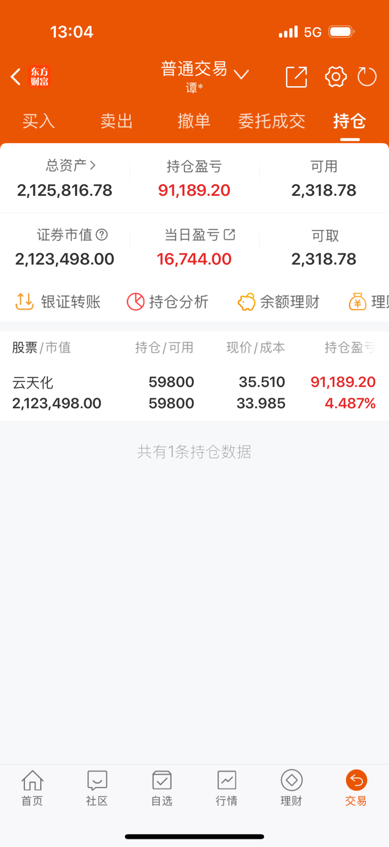 100万炒股的48天,今天a股不及预期,直接老传统高开低走,连新高都无法形成突破,大科技继续全线调整,而大金融今天无法形成发力上涨,同时今天大消费也不是全线上涨只有部分上涨,所以今天大盘形成一个高开低走的震荡微跌行情,但是短线3990附近支撑,维持一个横盘震荡行情。目前回调到支撑位,继续等待大盘指数的反弹收复行情!#炒股日记# $云天化(SH600096)$