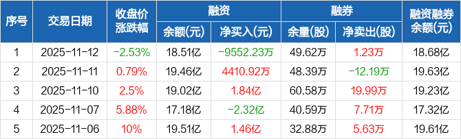 云天化:融资净偿还9552.23万元,融资余额18.51亿元(11-12)