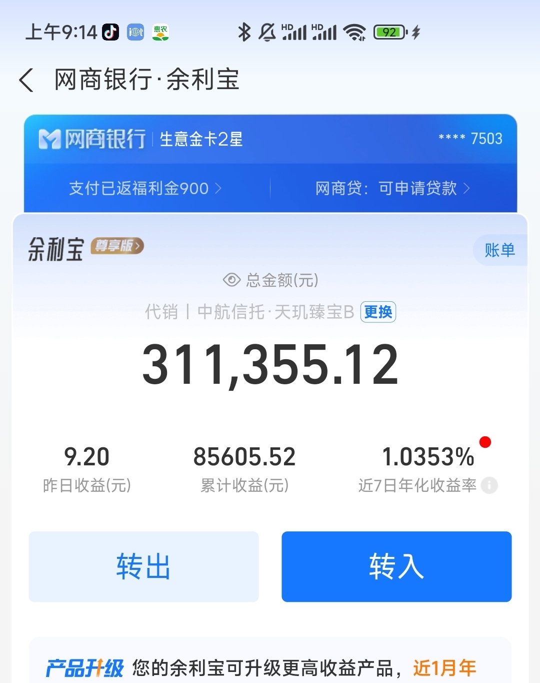 余利宝还有31万,晚上等老婆下班回来商量一下加仓云天化了,余利宝利息实在太低了。
