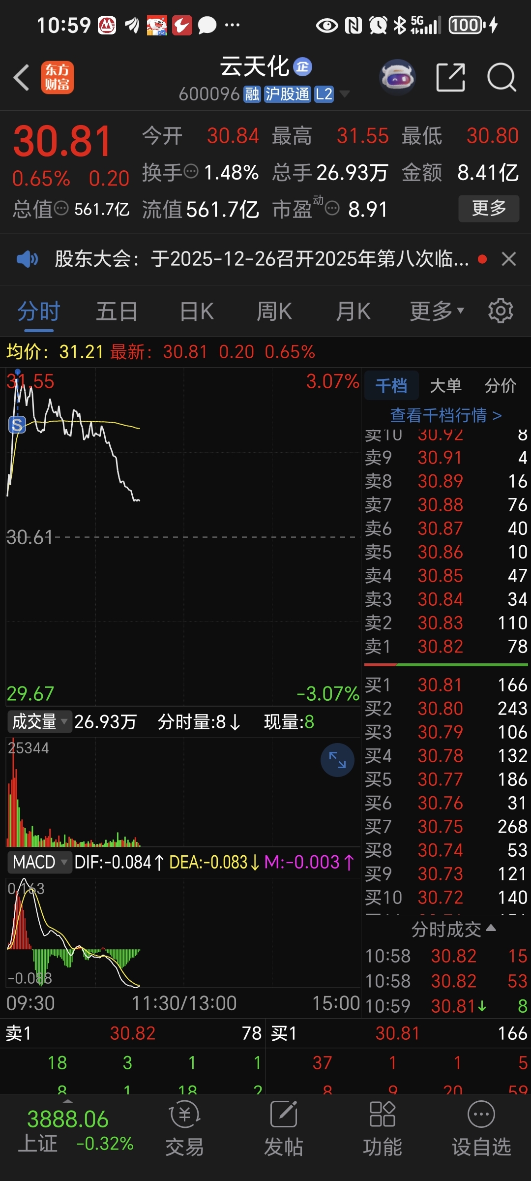 $云天化(SH600096)$ 估计今个又卖在最高点了