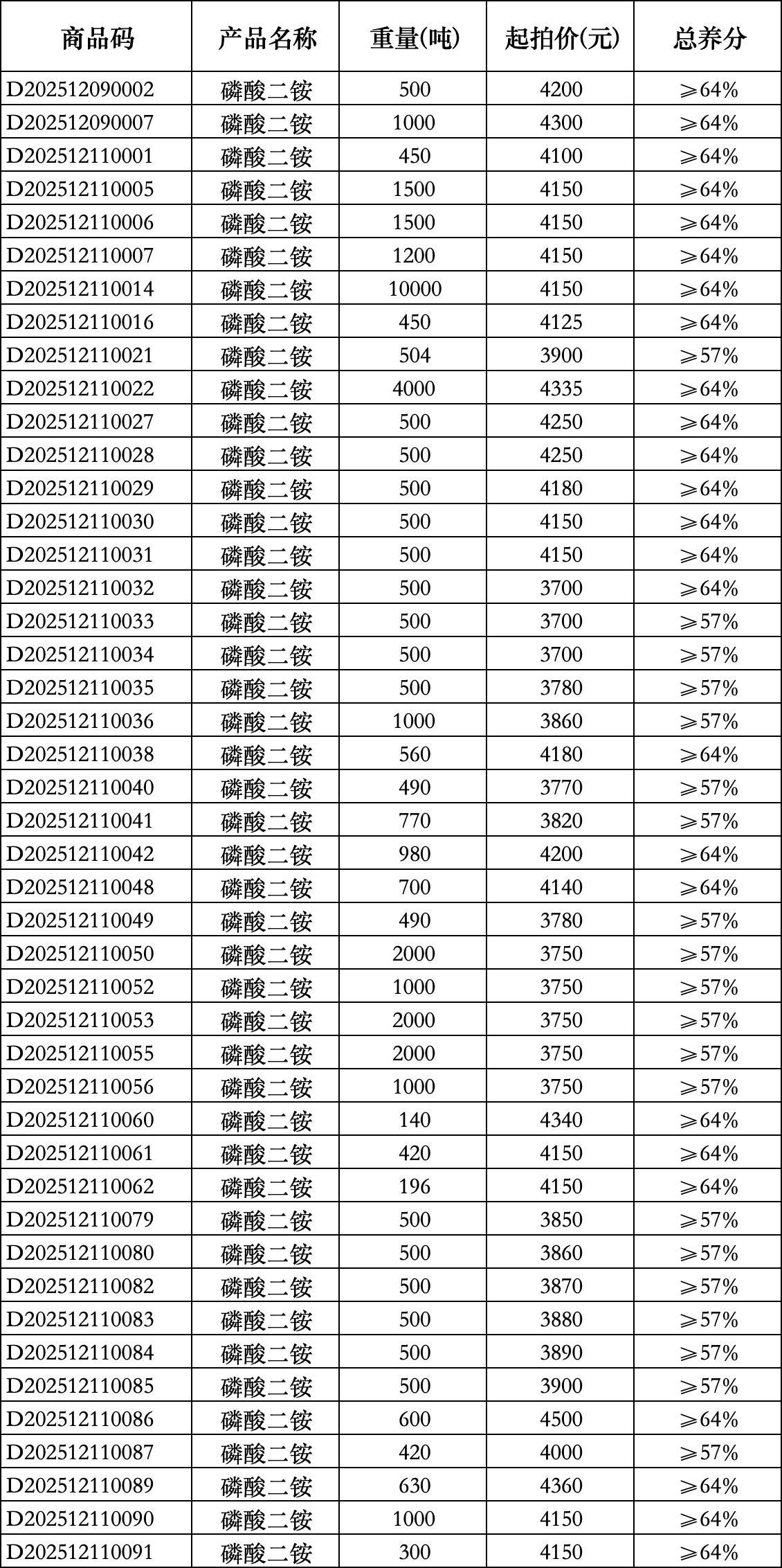 根据《国家化肥商业储备氮磷及复合肥建储采购竞拍交易办法》规定,现将12月12日氮磷及复合肥竞拍部分交易信息预告如下: