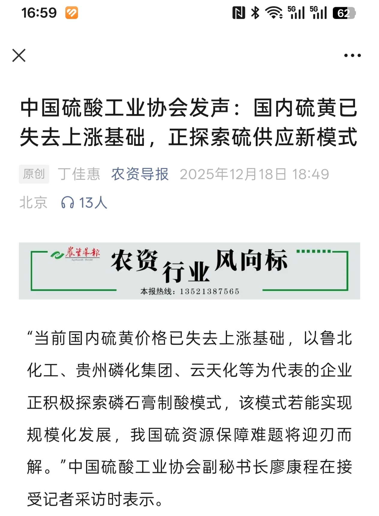 磷肥价格今年11月保供平台上线后,已经彻底实现商业化。硫磺的价格后续也会企稳下降