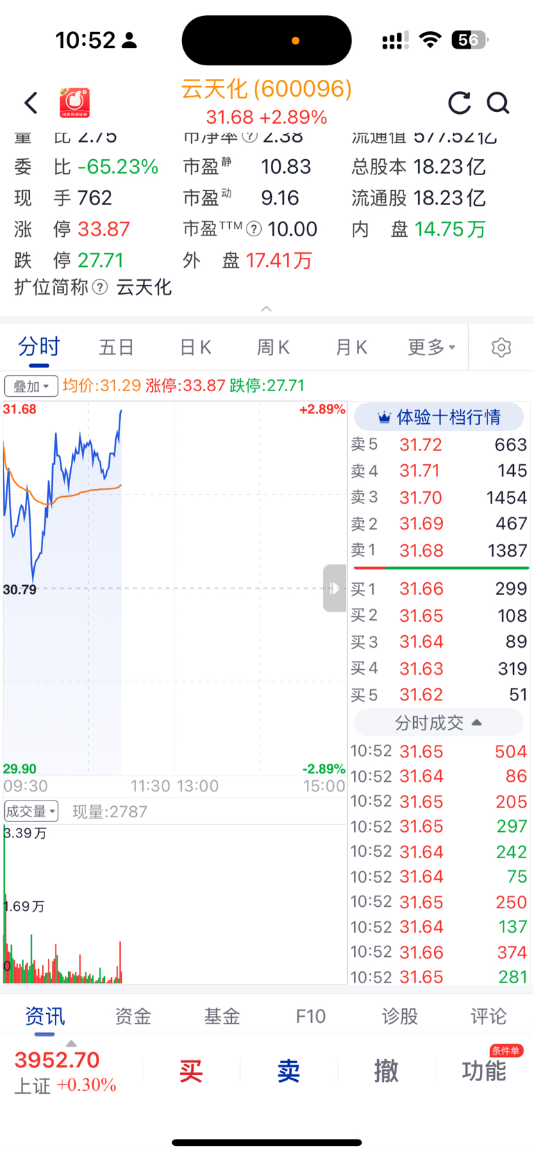 $云天化(SH600096)$ 早上这个下跌厉害,洗出去了不少恐慌的小资金
