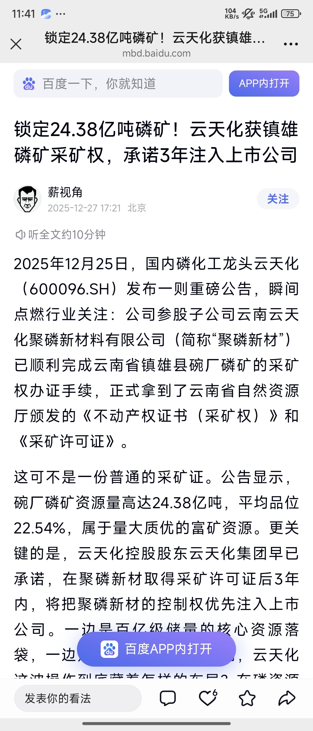 $云天化(SH600096)$ 连续三天板,哇啦啦啦啦