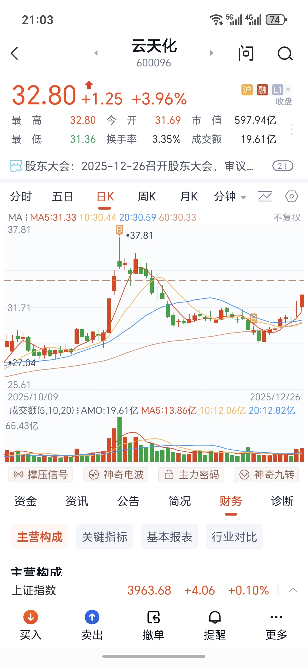 $云天化(SH600096)$ 价值投资就不能在意短期的波动