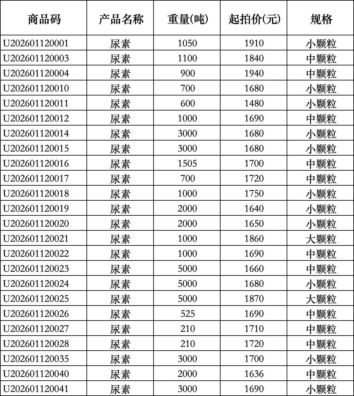 1月13日氮磷及复合肥竞拍交易预告