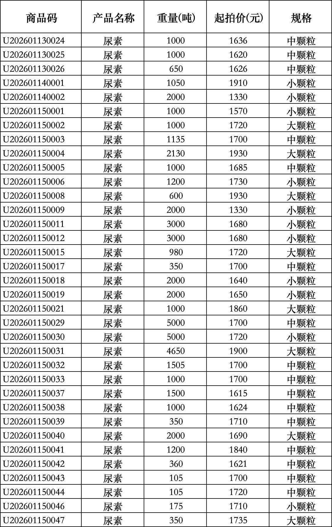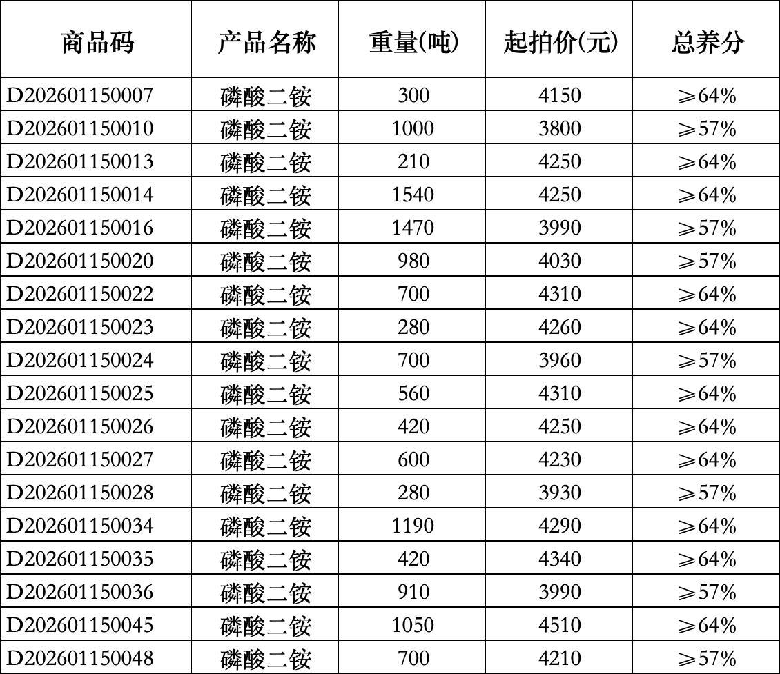 1月16日氮磷及复合肥竞拍交易预告