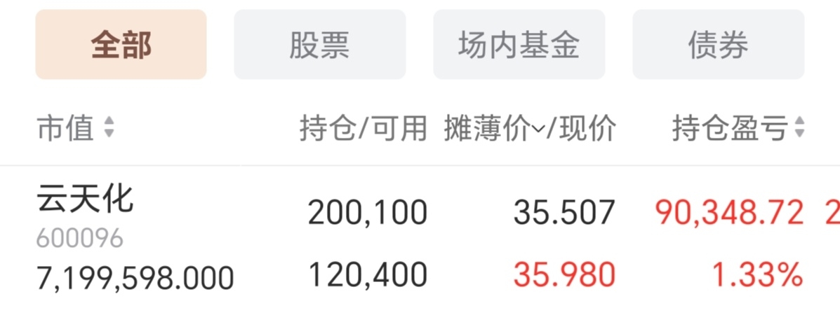 $云天化(SH600096)$ 虽己盈利,继续锁仓。当前实体行业大多数业绩下滑,市场选择炒作无业绩支撑的题材概念泡沫股充胖子,但象云天这样有实质可持续业绩的公司是真正的凤毛麟角,值得长期拥有。