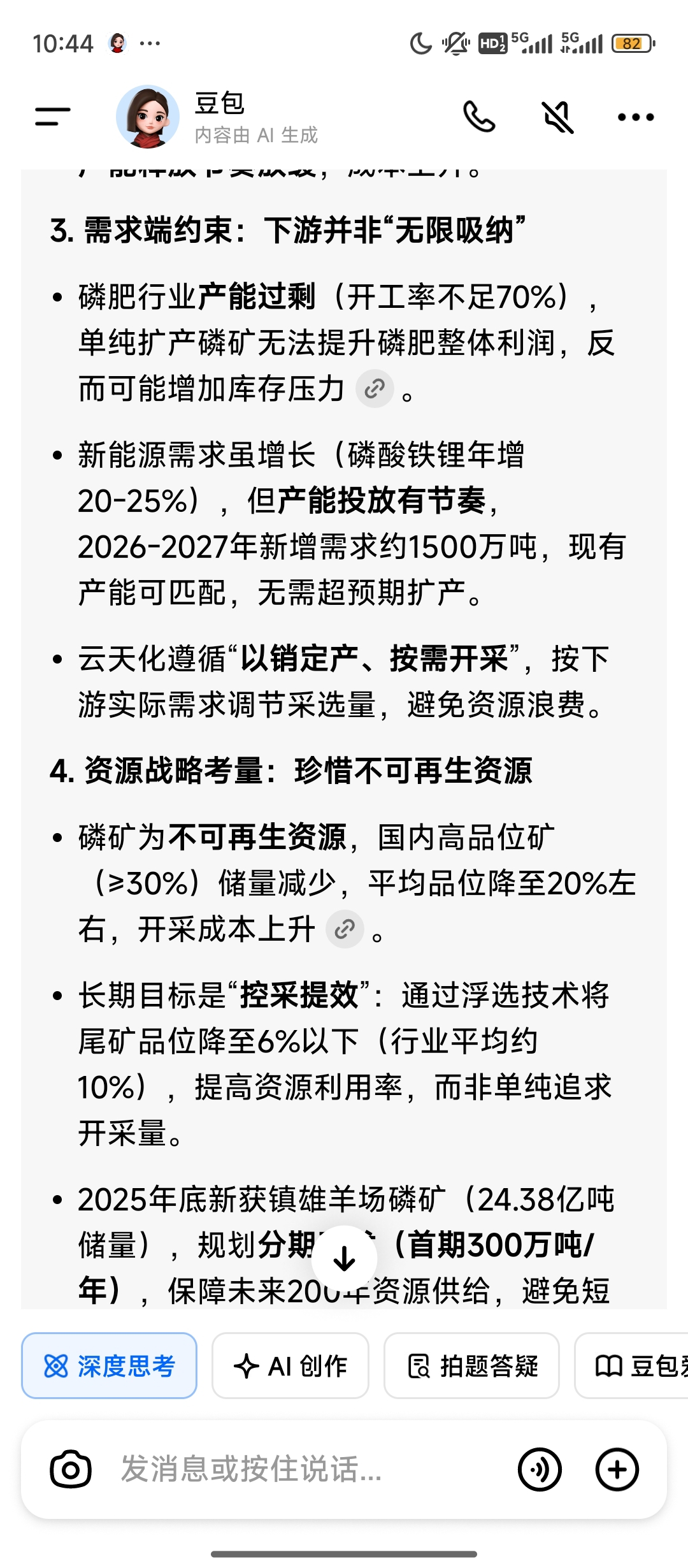$云天化(SH600096)$ 一直不明白,磷矿这么高的价格,为什么不扩产。不知道ai的说法是否正确
