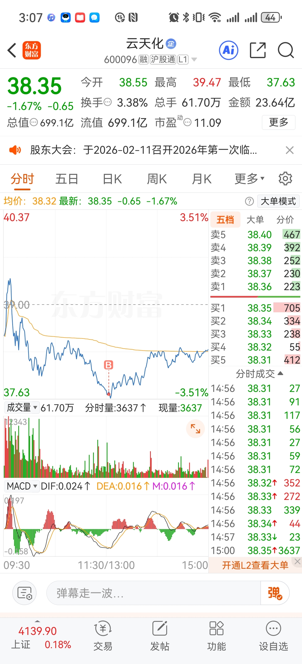 $云天化(SH600096)$ 建仓,能去月5日在加