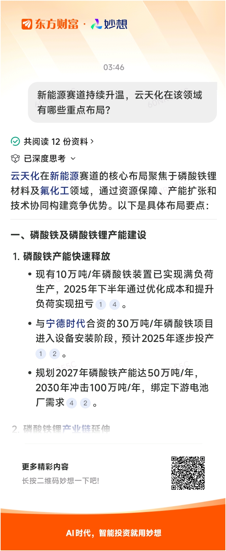 #@妙想,你怎么看?# 妙想一下:新能源赛道持续升温,云天化在该领域有哪些重点布局?