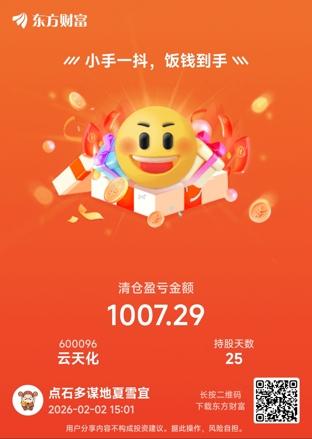 温馨提示: 1.根据《证券法》规定,禁止编造、传播虚假信息或者误导性信息,扰乱证券市场;2.用户在本社区发表的所有资料、言论等仅代表个人观点,与本网站立场无关,不对您构成任何投资建议。用户应基于自己的独立判断,自行决定证券投资并承担相应风险。《东方财富社区管理规定》
