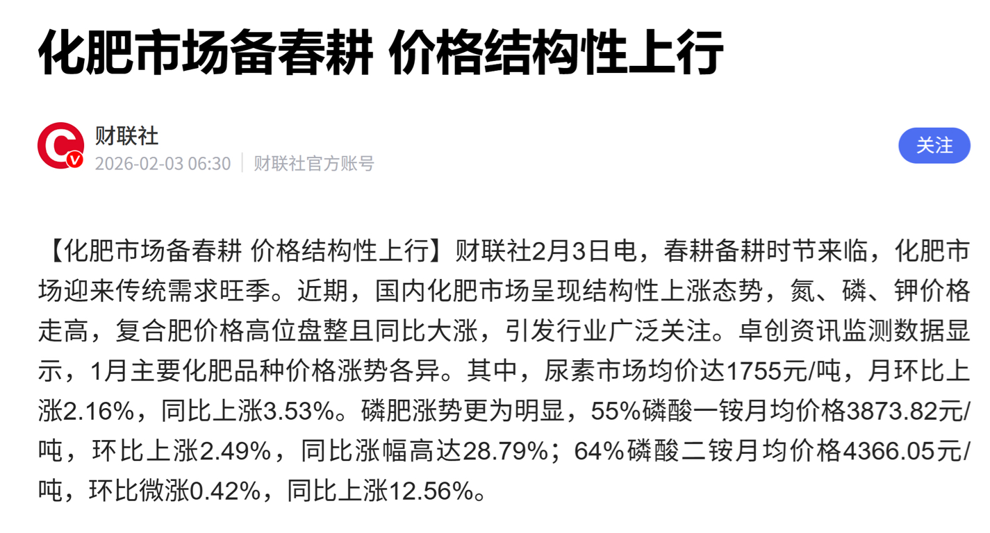 $云天化(SH600096)$ 磷肥价格大涨,云天化涨起来。。。