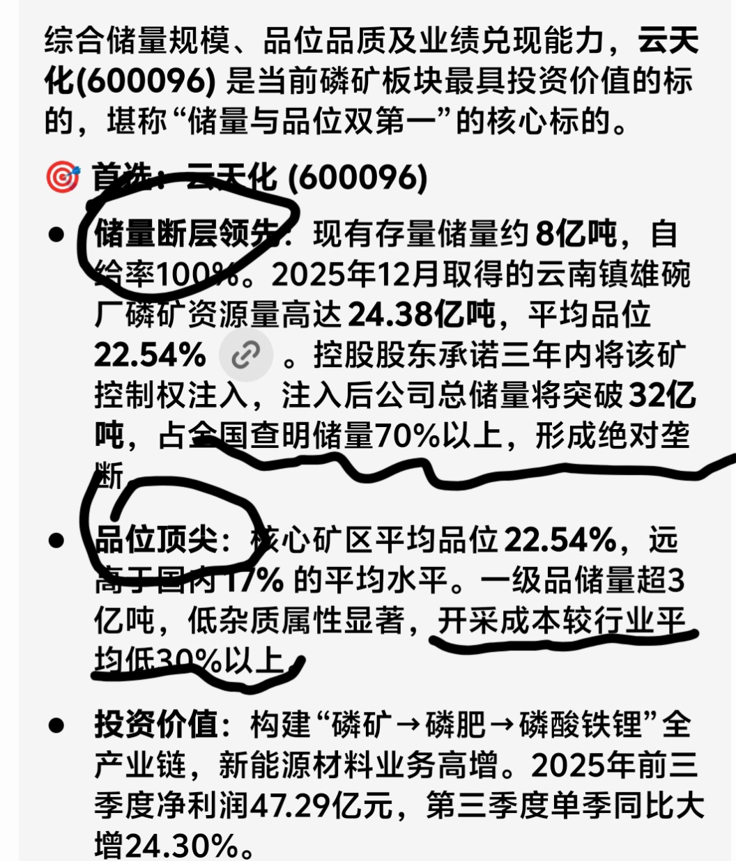 @操盘手大兄弟!云天化磷矿储量占全国70%!品位高!开采成本比行业低30%!用龙