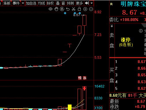 明牌珠宝:它是中高档珠宝首饰产品这一块,近期黄金价格连续活跃,它也是不断创新高,昨天出现平开低走但是量能没有放大,属于小紫金兑现,大主利还没出货,今天继续看黄金方向的消息,应该还会持续几天。
