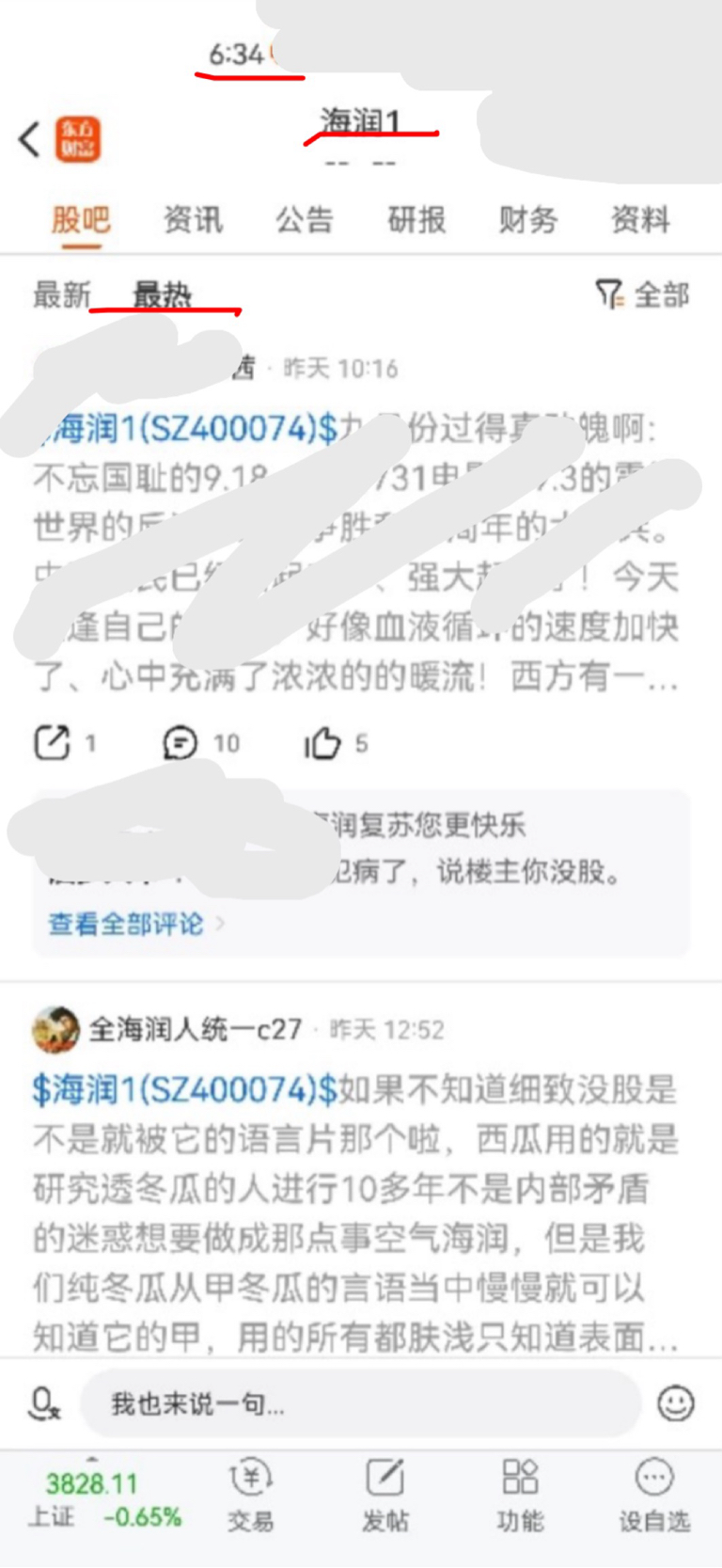 $开创国际(SH600097)$ 吧长好:极速把吧长好的信息从两吧的最热随意踢出。股民早上6:33上来截图最热都被极速做了手脚里面顺序都是它安排的海润1和退市海润,麻烦吧长维护下程序$退市海润(SH600401)$ $海润1(SZ400074)$
