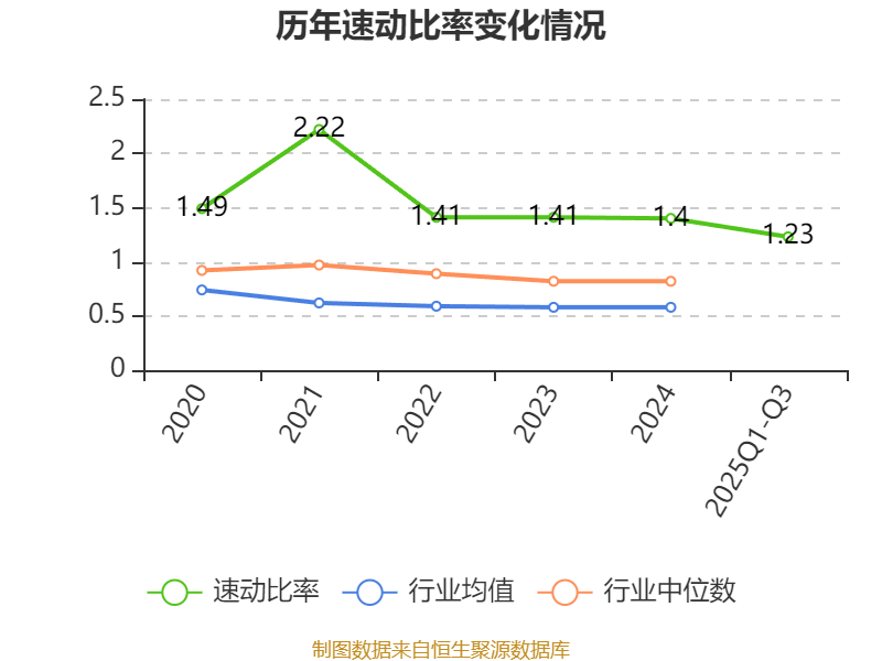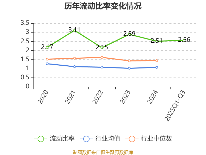 2025年前三季度,公司流动比率为2.56,速动比率为1.23。