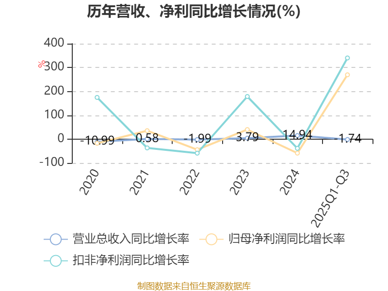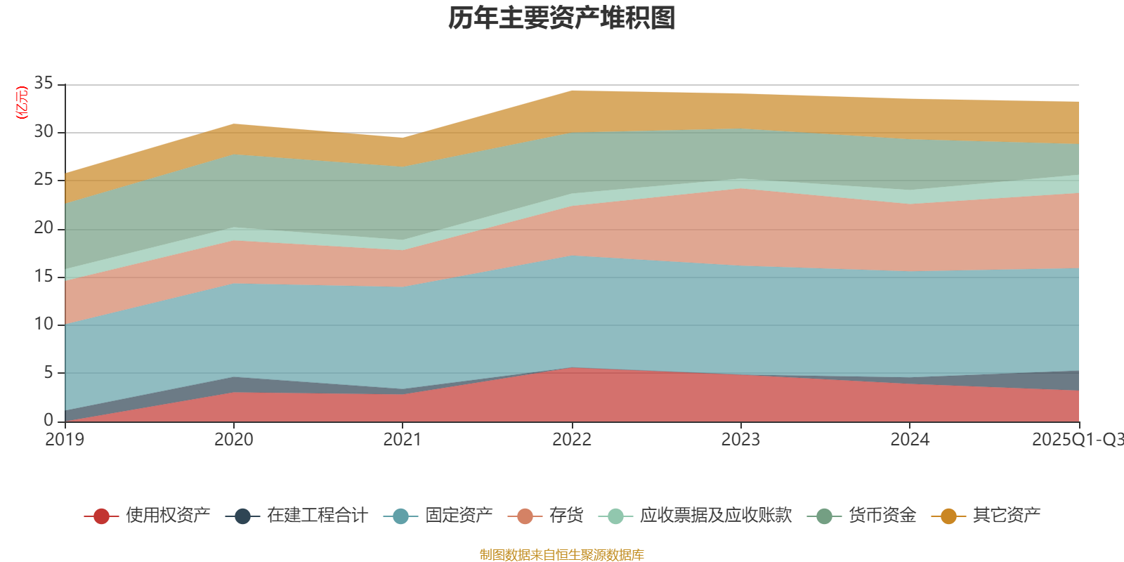 资产重大变化方面,截至2025年三季度末,公司货币资金较上年末减少39.03%,占公司总资产比重下降6.04个百分点;在建工程合计较上年末增加208.13%,占公司总资产比重上升4.25个百分点;存货较上年末增加11.71%,占公司总资产比重上升2.65个百分点;使用权资产较上年末减少17.72%,占公司总资产比重下降1.97个百分点。