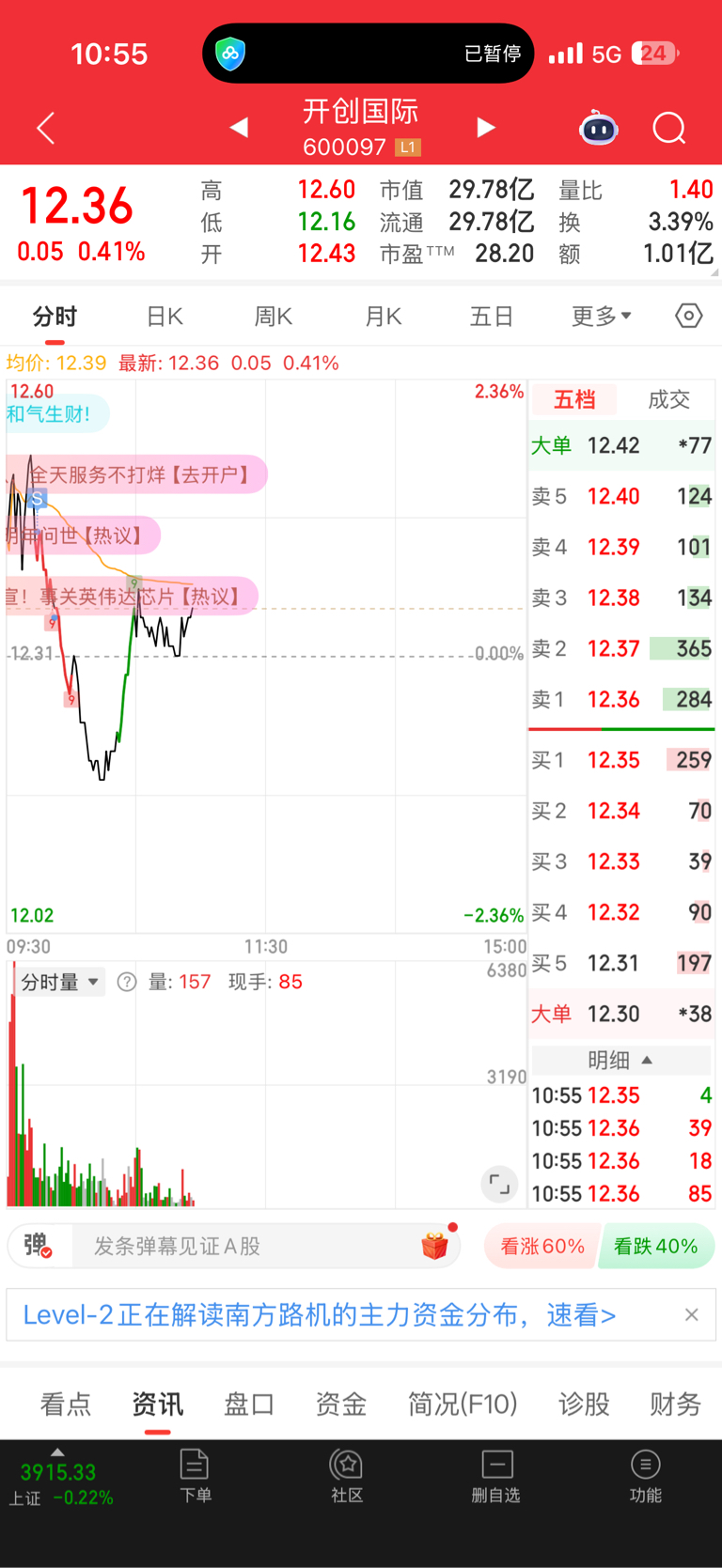 $开创国际(SH600097)$ 散户我割了,你可以拉了,怂的很,明明有机会涨停。