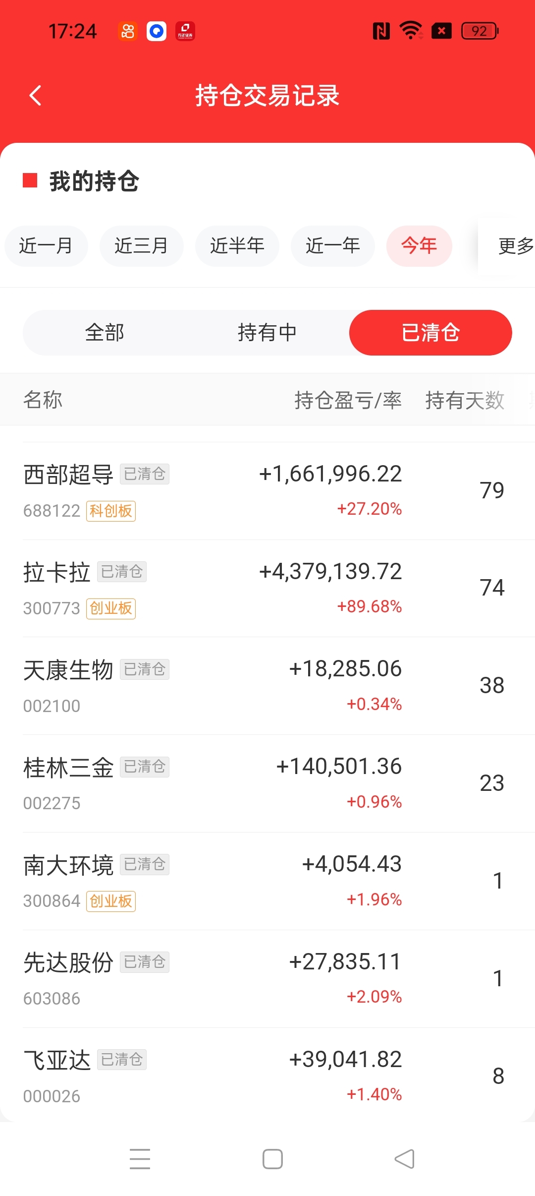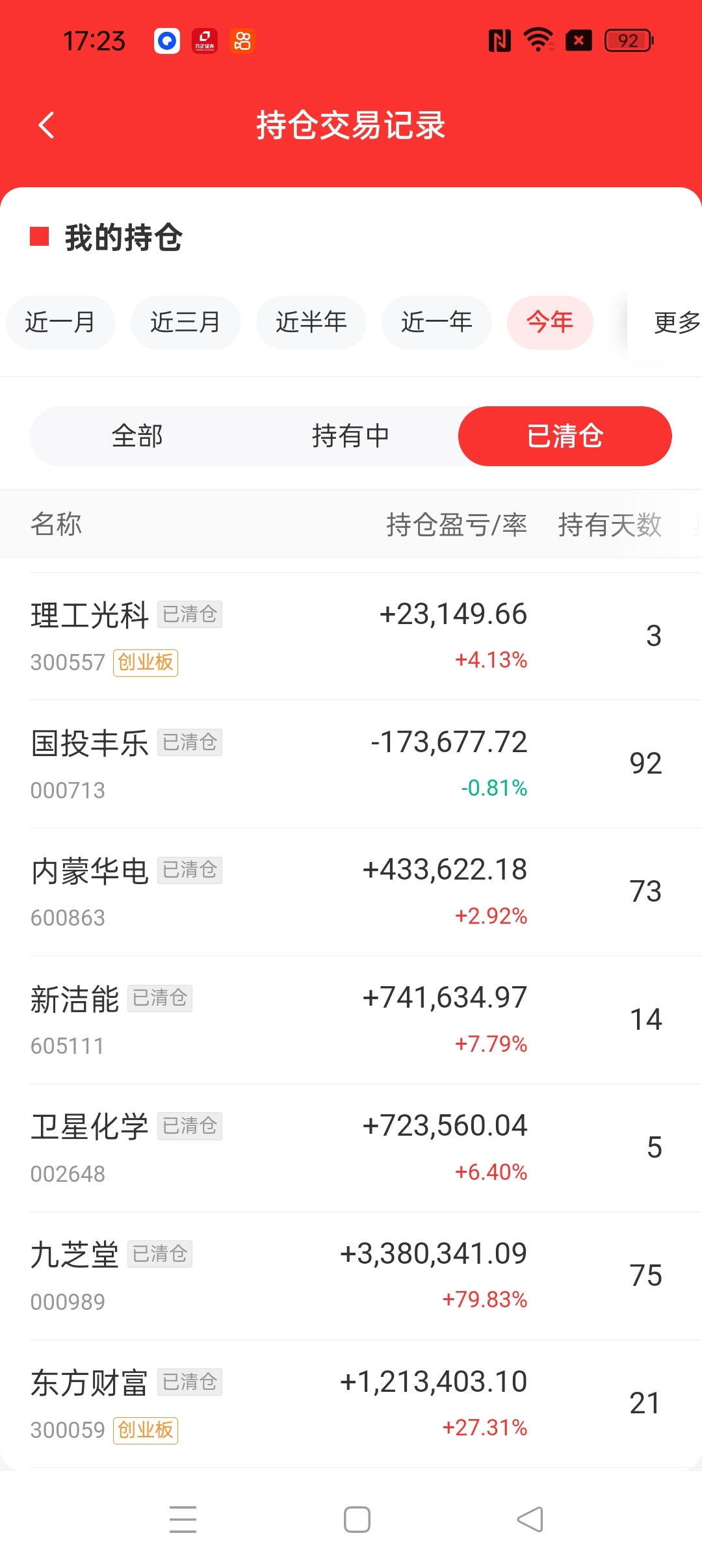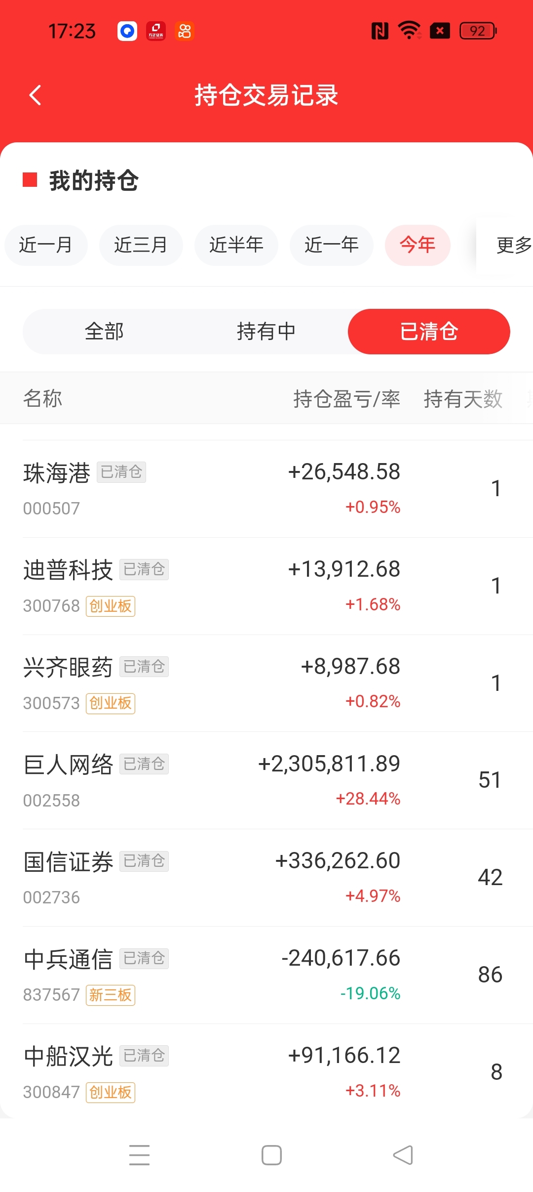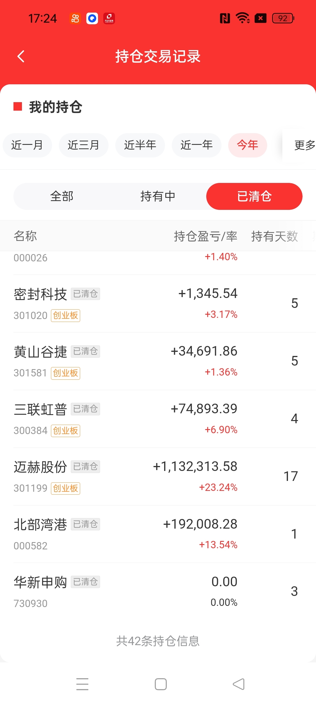 节至今日收盘本帐号清仓股及曰常交易数据,目前持仓四支个股为明年储备,今年计划收益
