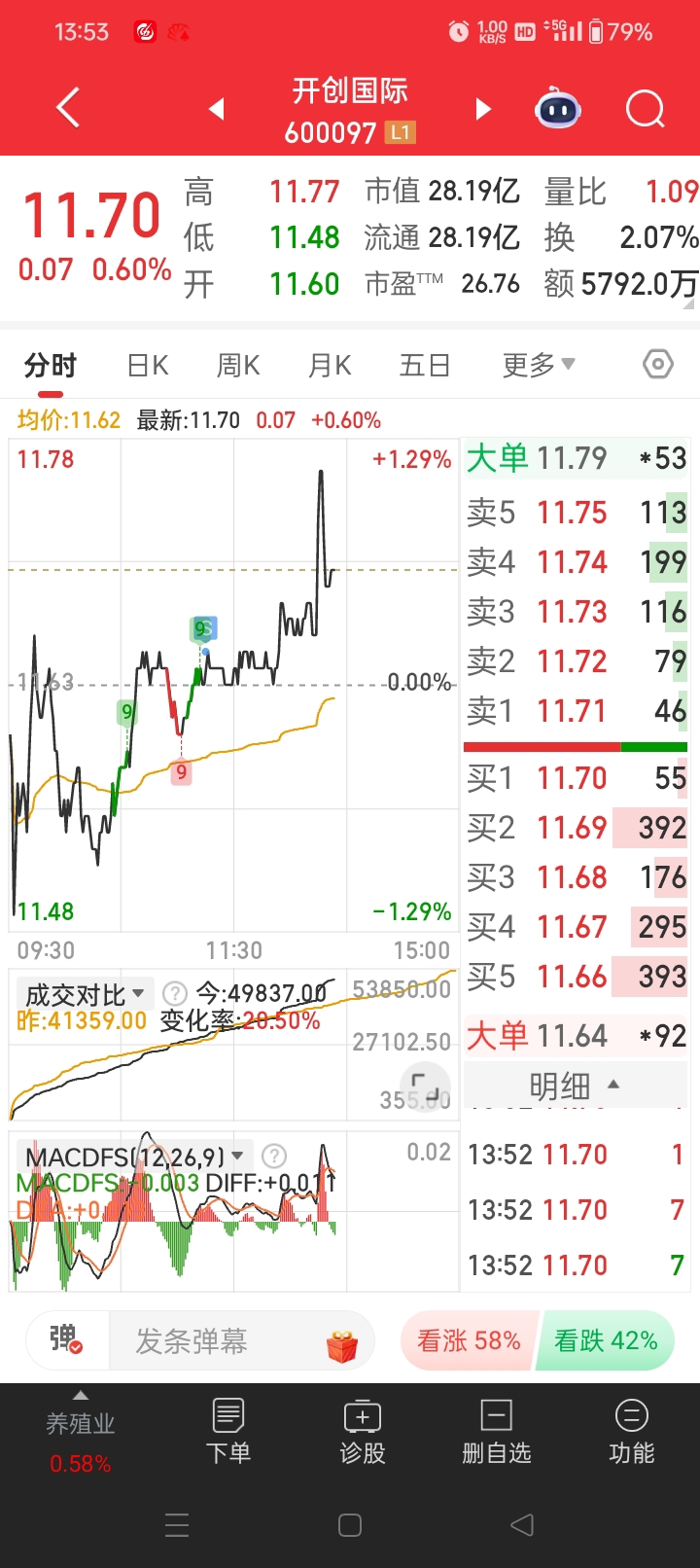 $开创国际(SH600097)$ 筹码转给你。你可以涨停了。留下的发财。