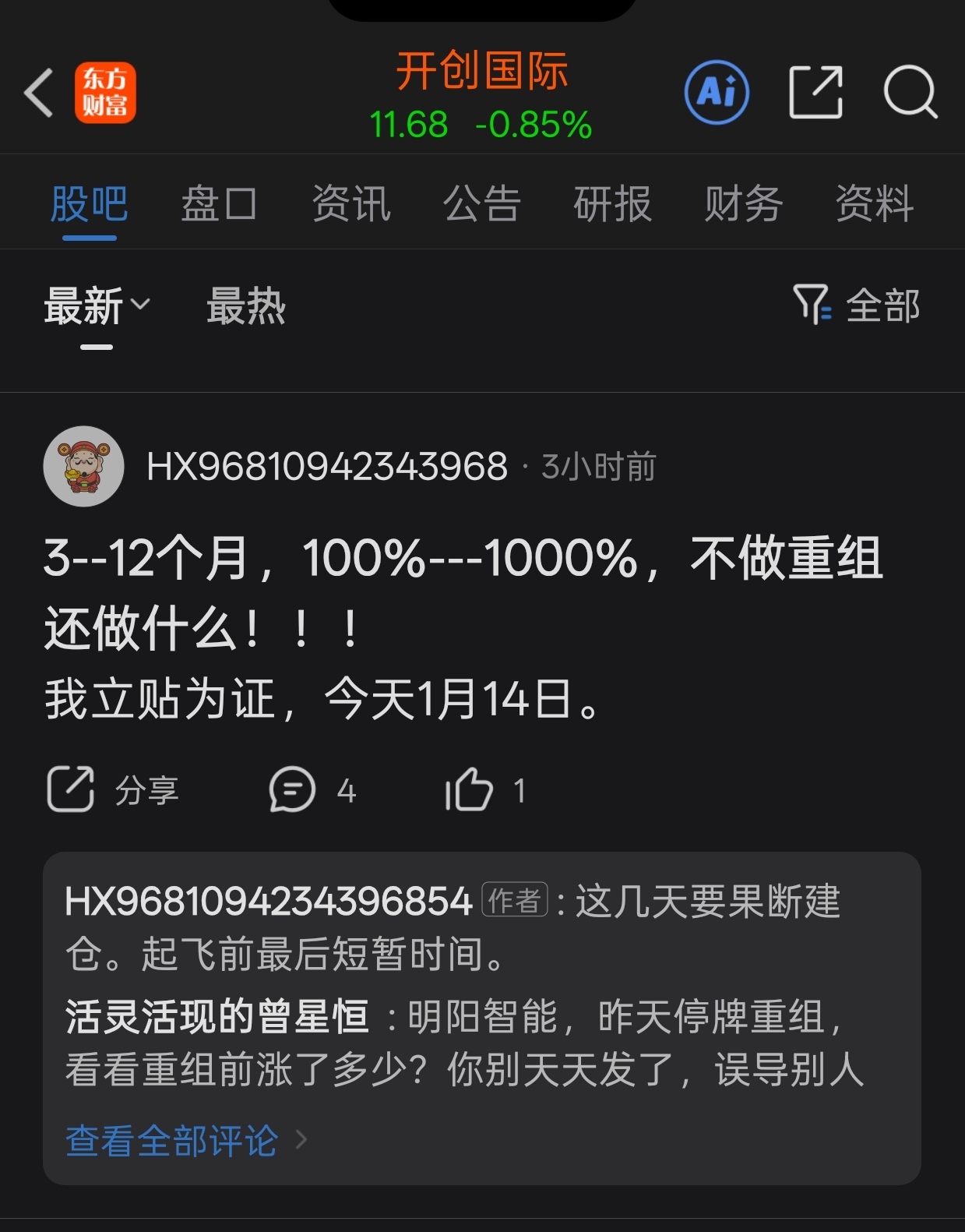 $开创国际(SH600097)$ 这人,是不是亏疯了