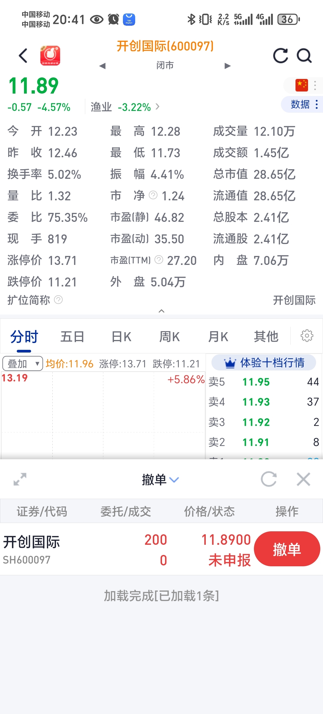 $开创国际(SH600097)$ 已挂好,主力我是你坚实的后盾。