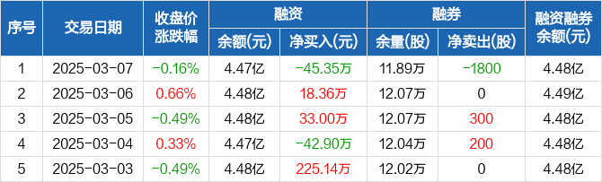 广州发展:融资净偿还45.35万元,融资余额4.47亿元(03-07)