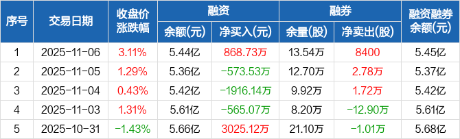 广州发展:融资净买入868.73万元,融资余额5.44亿元(11-06)