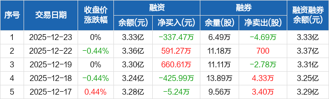 广州发展:融资净偿还337.47万元,融资余额3.33亿元(12-23)