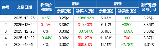 广州发展:融资净偿还1088.12万元,融资余额3.25亿元(12-25)