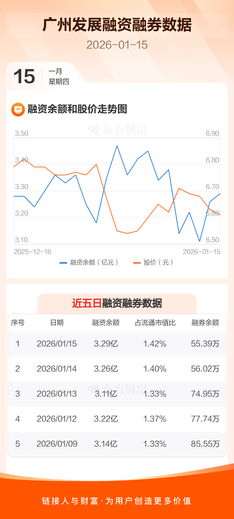 交易所最新数据显示,广州发展于2026年1月15日获融资买入1768.56万元,融资偿还1422.70万元,当日融资净买入345.86万元。目前,该股融资余额3.29亿,占流通市值比例为1.42%。