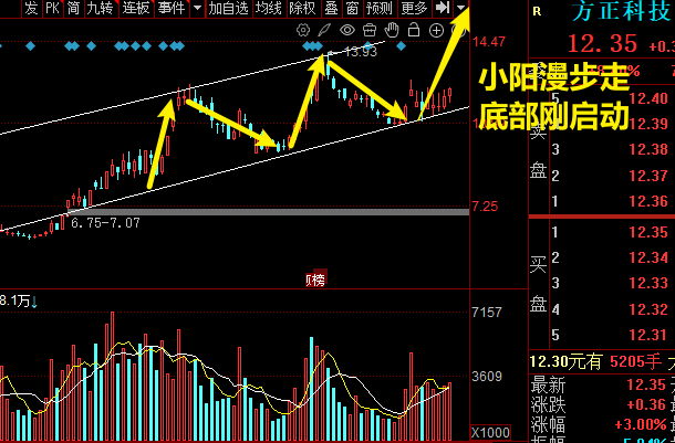 股价走的是标准的上升趋势,放量拉升,缩量调整,低点和高点都在抬升,近期收出五连阳,形成标准的小阳漫步走的趋势上张形态,下方成交量堆量,主俚紫金在持续流入,从量价关系和K线形态来看已经具备开启三浪行情的所有条件,手中有条件的铁子可以考虑支撑线附近布居上车。