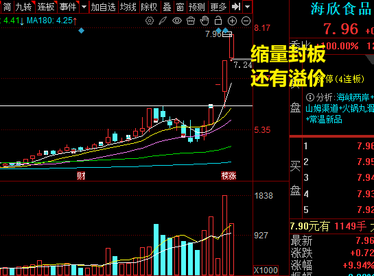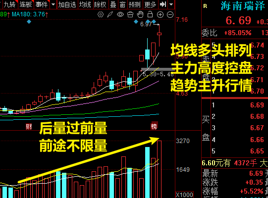 海欣低西跟庄上车2个交易日的时间已经拿到了31%的收亿,今天股价高开高走,早盘主俚放量拉升封死张停,全天成交量缩量,意味着场内紫金分歧较少,目前上方还有溢价和空间,明天不管主俚如何洗盘和震荡,只要下方缺口不回补,不会轻易下车,目前正在走加速行情。