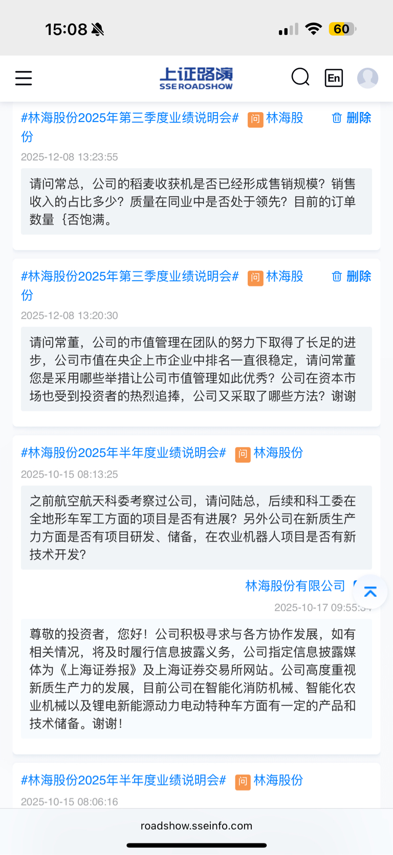 $林海股份(SH600099)$ 业绩说明会,叫投资者提问,又不回复,还是城信的央企吗?看看如何回答吧